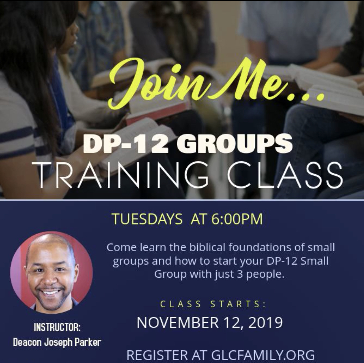 The DP-12 Training class will equip facilitators with the tools necessary to have a successful DP-12 group meeting. Participants will be taught GLC's small group structure and the foundation of DP-12 groups.