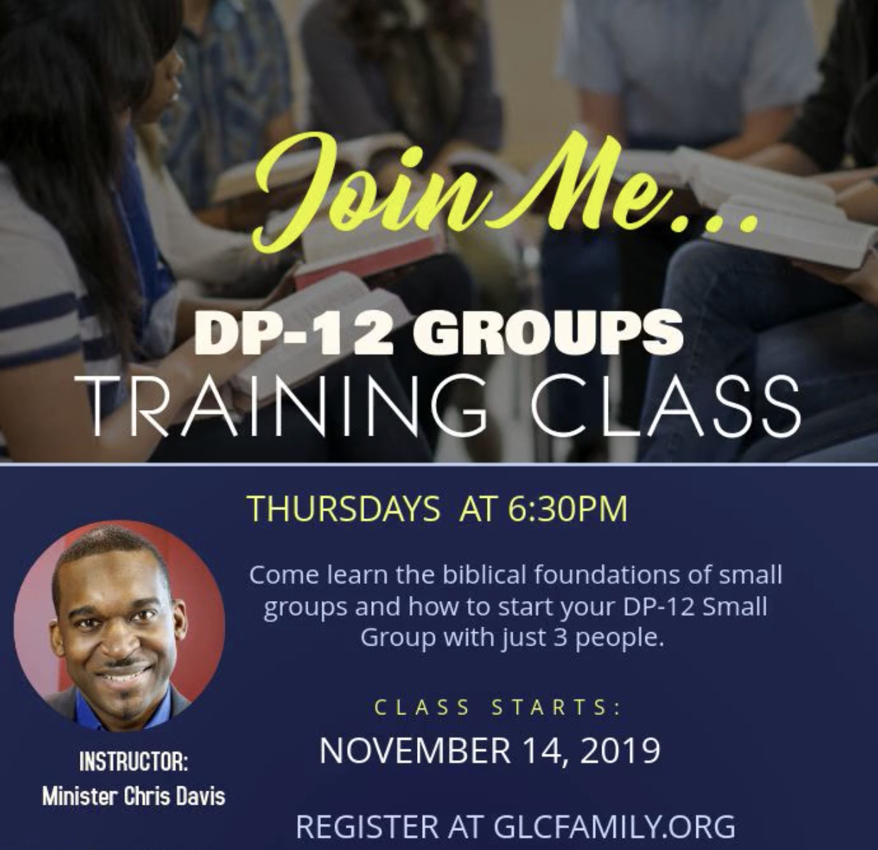 The DP-12 Training class will equip facilitators with the tools necessary to have a successful DP-12 group meeting. Participants will be taught GLC's small group structure and the foundation of DP-12 groups.